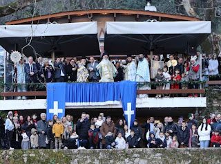 Πλήθος πιστών και εκπρόσωποι των τοπικών αρχών, τίμησαν τη μεγάλη γιορτή της Χριστιανοσύνης, παρακολούθησαν τη δοξολογία, στο Μητροπολιτικό Ναό και στη συνέχεια τον καθαγιασμό των υδάτων στις Πηγές της Κρύας.