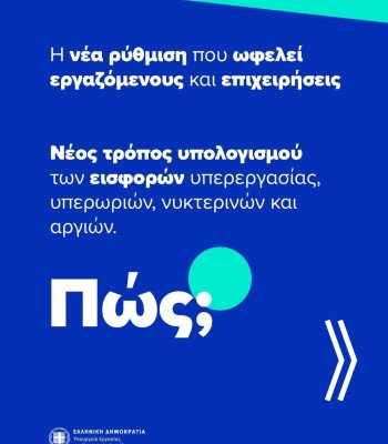 «Το Υπουργείο Εργασίας προχωρά σε νέα ρύθμιση για τη κατάργηση των προσαυξήσεων στις ασφαλιστικές εισφορές που αφορούν υπερεργασία, υπερωρίες, νυχτερινή εργασία, και απασχόληση σε Κυριακές και αργίες. Η ρύθμιση αυτή δεν επηρεάζει το ύψος των προσαυξήσεων που προβλέπονται για την αμοιβή της υπερεργασίας, των υπερωριών, της νυχτερινής εργασίας και της απασχόλησης σε Κυριακές και αργίες, οι οποίες εξακολουθούν να καταβάλλονται κανονικά. Η πρωτοβουλία αυτή αποτελεί συνέχεια της οριζόντιας μείωσης των ασφαλιστικών εισφορών κατά 5,4 ποσοστιαίες μονάδες από το 2019, που έχει συμβάλει αποφασιστικά στην αύξηση της απασχόλησης και τη μείωση του ποσοστού ανεργίας στη χώρα μας. Σαν αποτέλεσμα της ρύθμισης μειώνεται το μη μισθολογικό κόστος των επιχειρήσεων και ενισχύεται το διαθέσιμο εισόδημα των μισθωτών πλήρους απασχόλησης. Με αυτή τη ρύθμιση βελτιώνεται η ανταγωνιστικότητα της οικονομίας, αμβλύνονται οι «στενότητες» που παρατηρούνται σε πολλούς κλάδους οικονομικής δραστηριότητας και αναβαθμίζεται το βιοτικό επίπεδο των εργαζομένων».