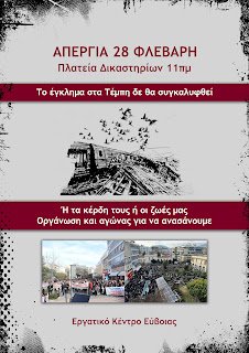 Στις 28 Φλεβάρη οι μουσικοί και οι Καλλιτέχνες ενωνόμαστε με το μεγάλο λαϊκό ποτάμι, με τους εκατοντάδες χιλιάδες απεργούς που θα κλείσουν τους χώρους δουλειάς που θα πλημμυρήσει τους δρόμους της Χώρας.