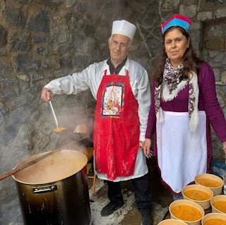 Στο ισόγειο του Νερόμυλου, στις Πηγές της Κρύας, στήθηκε ένα μεγάλο τραπέζι με τη φροντίδα των μελών του Λαογραφικού Συλλόγου το “Γαϊτανάκι”, σε συνδιοργάνωση με το Δήμο.