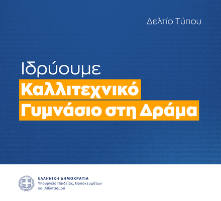 Στην ίδρυση Καλλιτεχνικού Γυμνασίου Δράμας, με έναρξη λειτουργίας του από το σχολικό έτος 2025-2026, προχώρησε το Υπουργείο Παιδείας, Θρησκευμάτων και Αθλητισμού, κατόπιν απόφασης της Υπουργού, Σοφίας Ζαχαράκη.