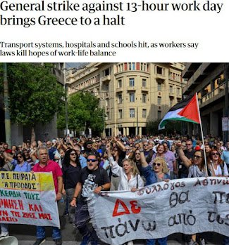 Η Ελλάδα «ταξιδεύει»… Στη Χαράρε, το Νέο Δελχί, το Μπακού και από εκεί στο Παρίσι, το Λονδίνο και το Βερολίνο. Το «13ωρο Κεραμέως» (που πρόσφατα έγινε νόμος τους κράτους) φιγουράρει στον διεθνή Τύπο, όχι για να εξυμνήσει τη χώρα μας. Οι απεργιακές κινητοποιήσεις των συνδικάτων κόντρα στο «αντεργατικό νομοσχέδιο» κέρδισαν περίοπτη θέση στα διεθνή ΜΜΕ ενώ η κριτική «πένα» των συναδέλφων, εκτός συνόρων, σημειώνει πως η κυβέρνηση Μητσοτάκη έχει μετατρέψει την αγορά εργασίας στη χώρα μας σε μια από τις πιο ευέλικτες στην Ευρώπη. Η θεσμοθέτηση της κατ’ εξαίρεση 13ωρης ημερήσιας εργασίας στην Ελλάδα, έστω και με δικλείδες ασφαλείας και τη σύμφωνη γνώμη του εργαζόμενου, έχει ξεσηκώσει θύελλα αντιδράσεων Παρότι πολλές ευρωπαϊκές χώρες εξετάζουν την τετραήμερη εργασία με λιγότερες ώρες απασχόλησης το εργασιακό τοπίο στη χώρα μας ολοένα και ελαστικοποιείται (σε εθελοντική βάση κατά τους εμπνευστές του νομοσχεδίου) γεγονός που δεν περνά απαρατήρητο.