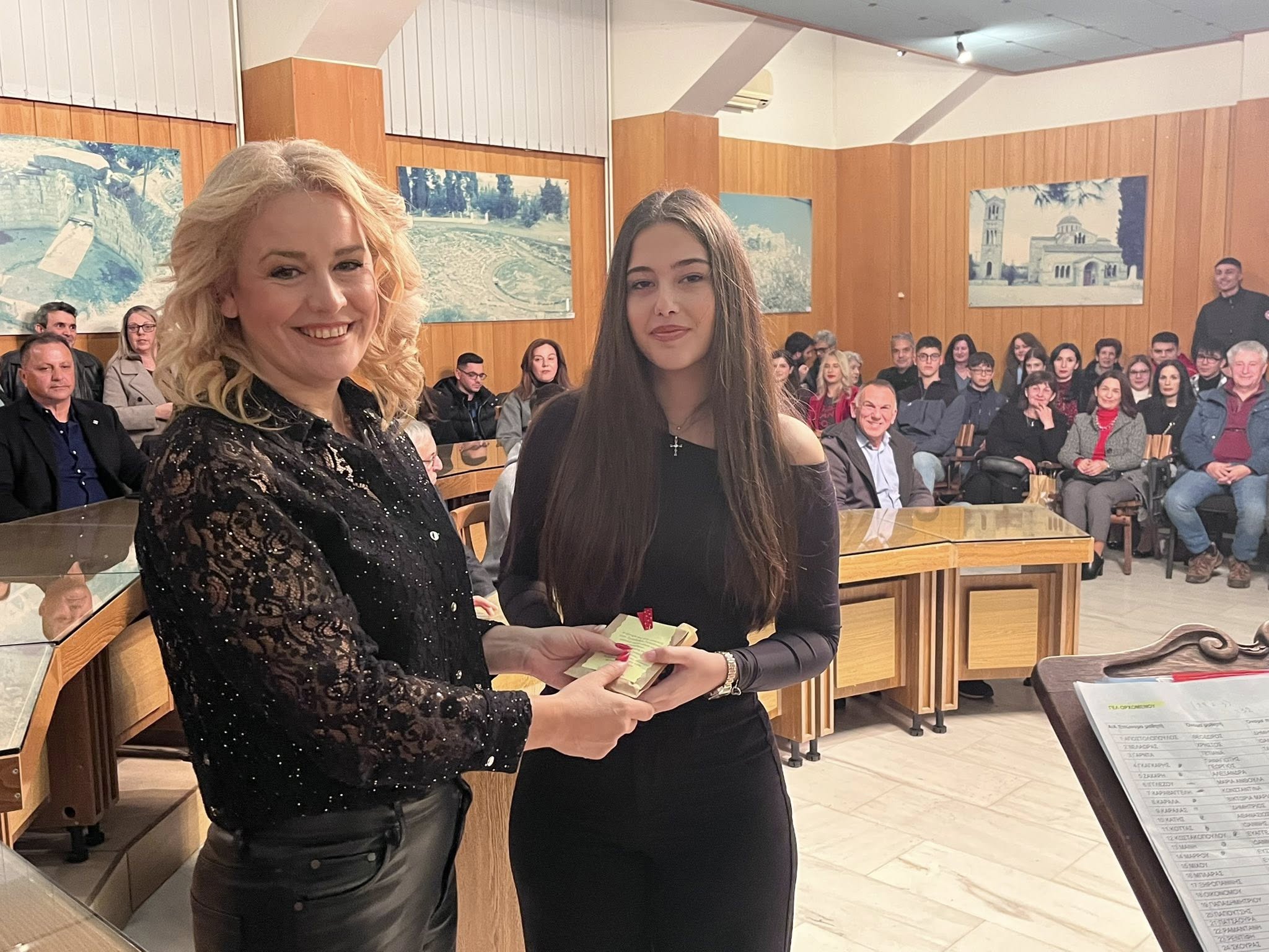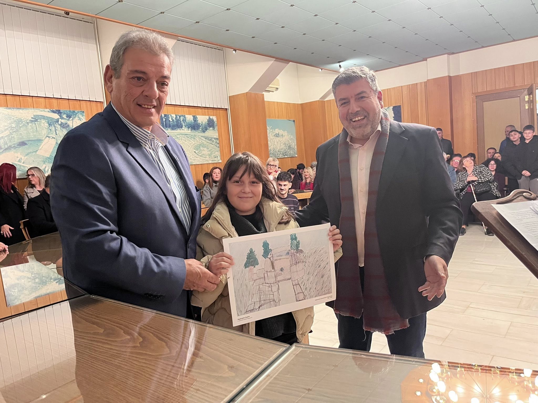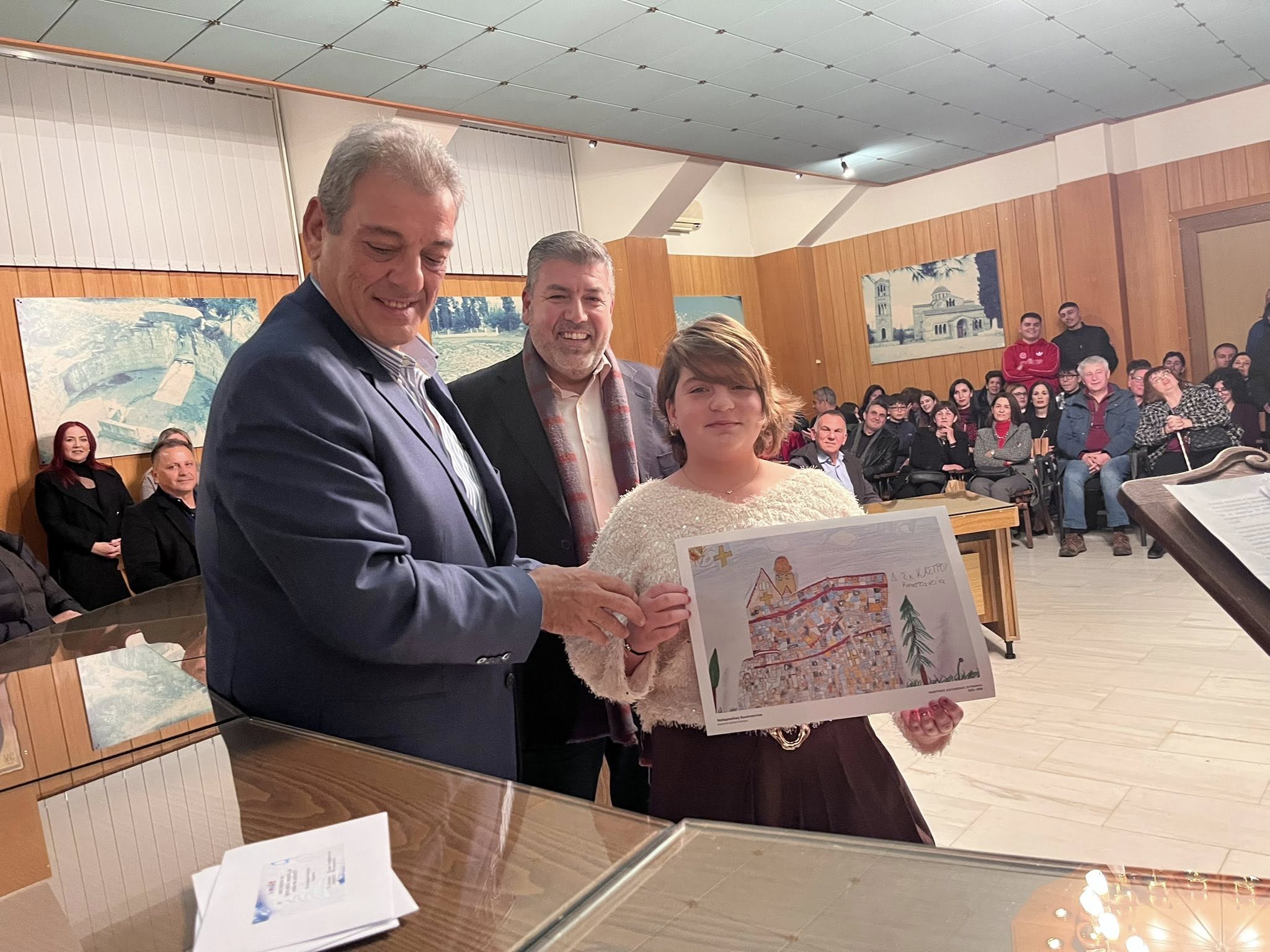 Στο τέλος της εκδήλωσης πραγματοποιήθηκε ειδική βράβευση τεσσάρων μαθητών, των οποίων τα έργα επιλέχθηκαν να κοσμήσουν τη φετινή χριστουγεννιάτικη κάρτα του Δημάρχου, με θέμα το Αρχαιολογικό Πάρκο Ορχομενού.