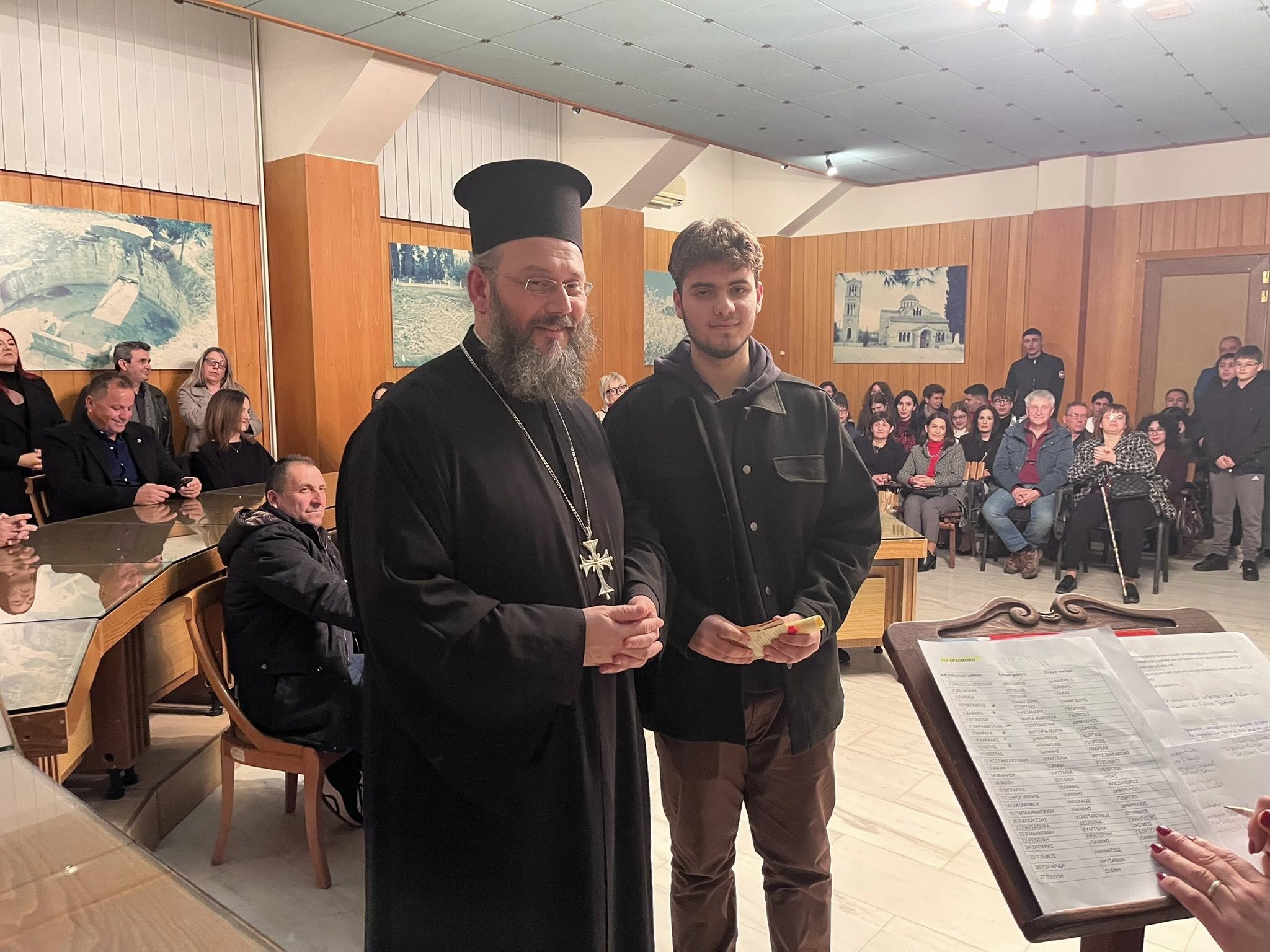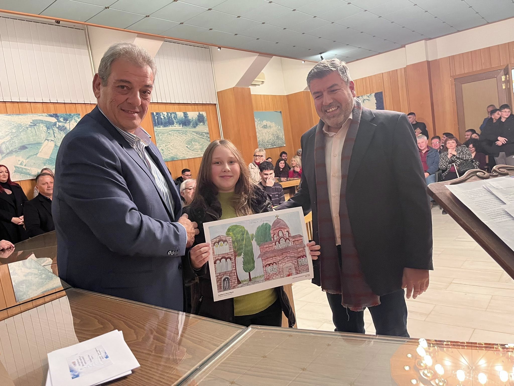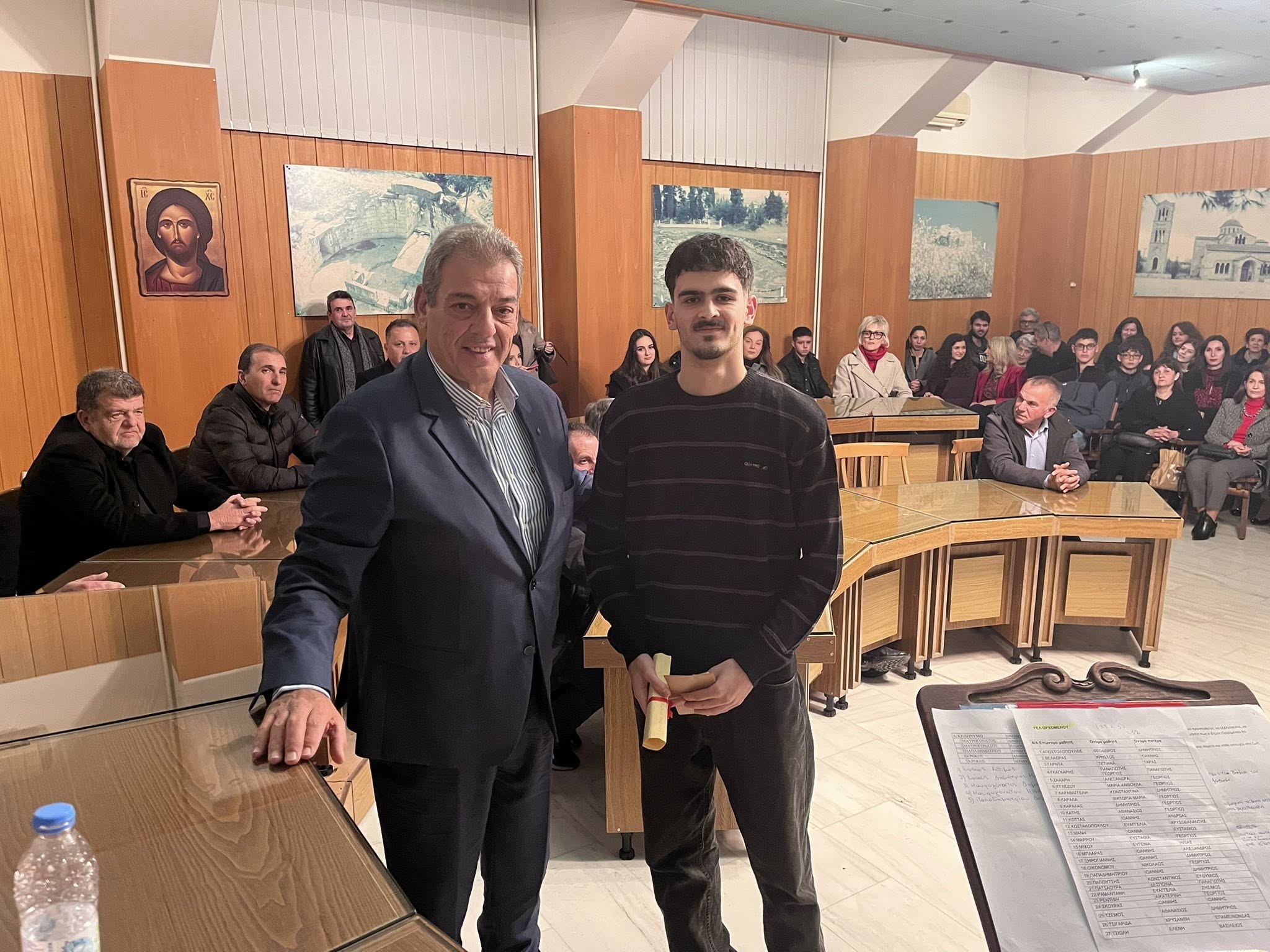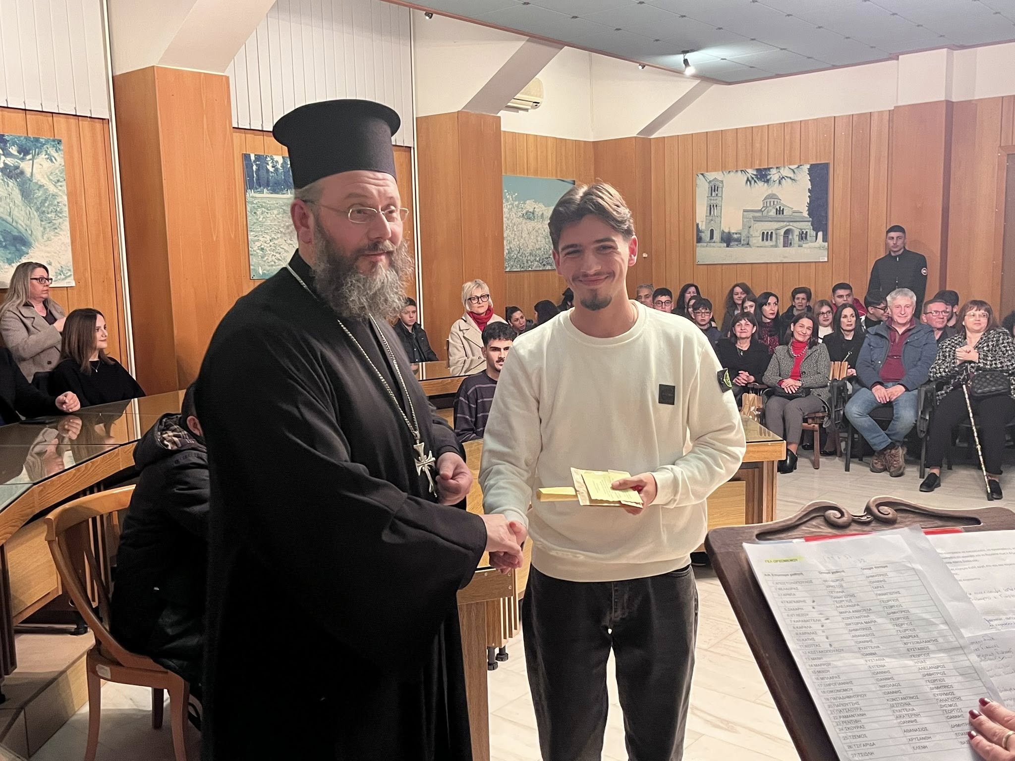 Στο τέλος της εκδήλωσης πραγματοποιήθηκε ειδική βράβευση τεσσάρων μαθητών, των οποίων τα έργα επιλέχθηκαν να κοσμήσουν τη φετινή χριστουγεννιάτικη κάρτα του Δημάρχου, με θέμα το Αρχαιολογικό Πάρκο Ορχομενού.