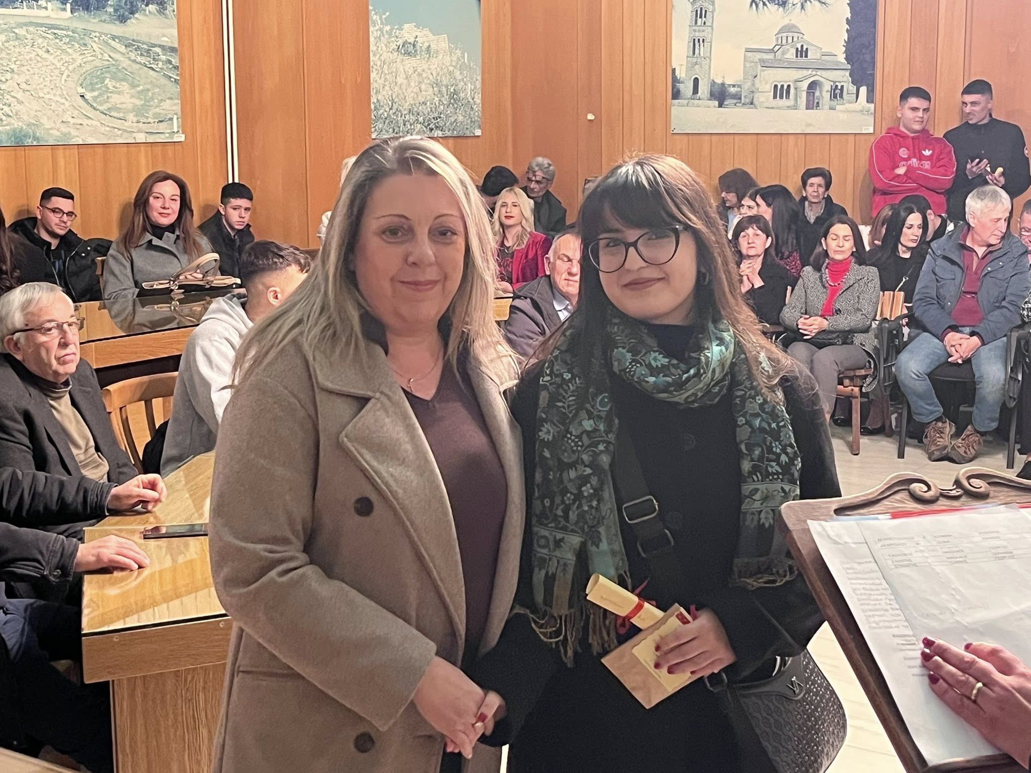 Οι επιτυχόντες έλαβαν τιμητικούς επαίνους, καθώς και από ένα αναμνηστικό χειροποίητο δώρο, προσφορά του καταστήματος Inspira Ceramics στον Ορχομενό.