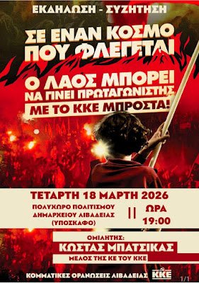 Λιβαδειάς του ΚΚΕ, σας καλούν στην εκδήλωση – συζήτηση που οργανώνουν την Τετάρτη