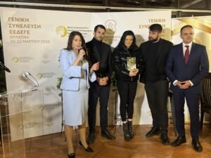 Μία από τις πιο ξεχωριστές στιγμές της βραδιάς ήταν η τιμητική βράβευση της Δήμητρας Κατσαφάδου, η οποία αναγνωρίστηκε για την επιτυχημένη επιχειρηματική της πορεία, τη δυναμική παρουσία της στον χώρο του επιχειρείν, καθώς και για τη σημαντική κοινωνική και φιλανθρωπική της δράση.  Η κα Κατσαφάδου, θέλησε να μοιραστεί τη στιγμή με τα δύο της αδέλφια, τον Νικόλα και τον Κυριάκο.