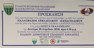 Φιλικός αγώνας ποδοσφαίρου μεταξύ παλαιμάχων Λεβαδειακού – Παναιτωλικού θα διεξαχθεί τη Δευτέρα 20 Απριλίου, στο Δημοτικό Στάδιο Λιβαδειάς.