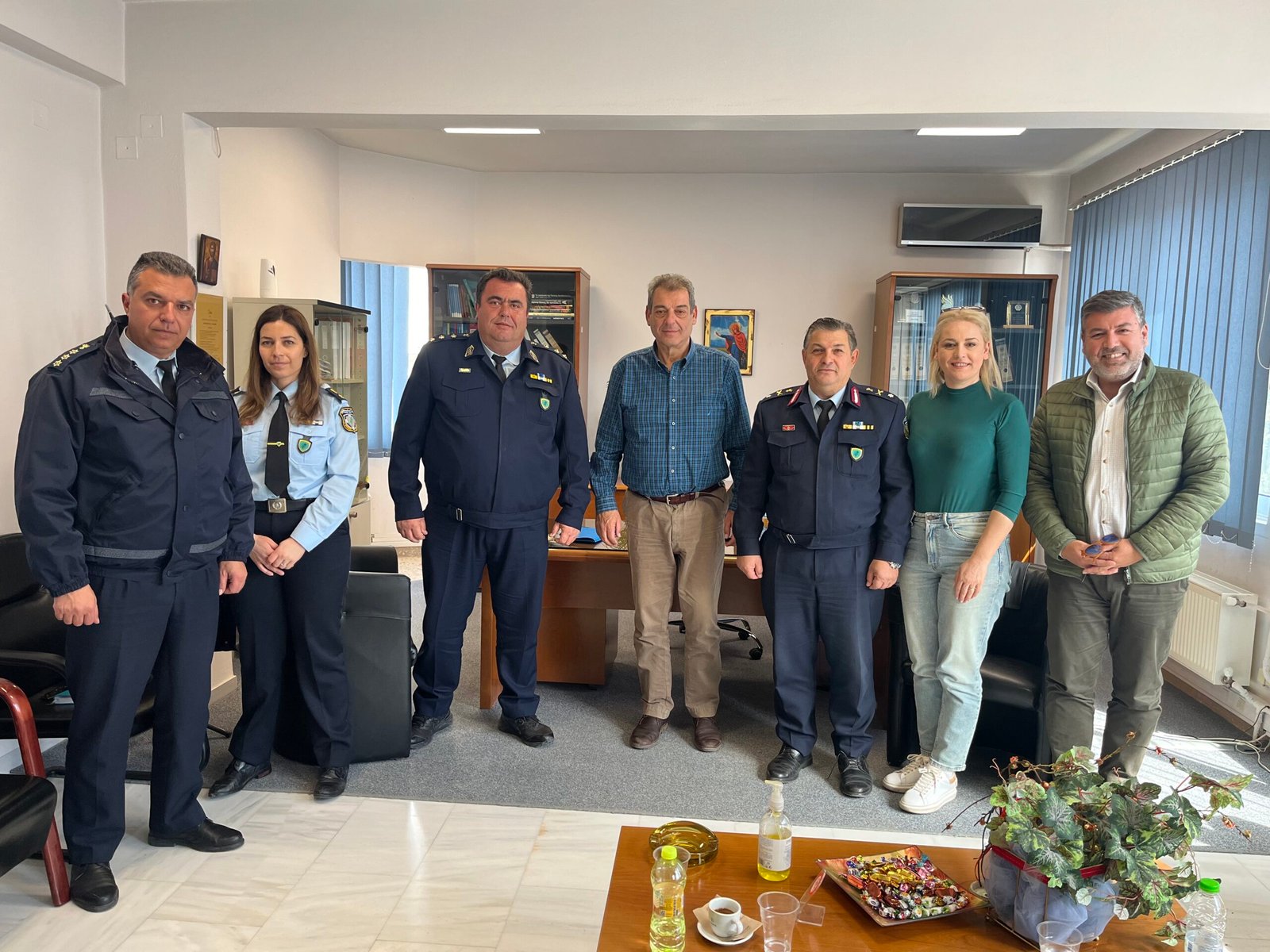 Ακόμα, στο πλαίσιο των εθιμοτυπικών του συναντήσεων, τον Δήμαρχο Ορχομενού κ. Γεώργιο Τζαβάρα επισκέφθηκαν στο Δημαρχείο Ορχομενού, ο Διευθυντής Αστυνομίας Βοιωτίας, Ταξίαρχος κ. Ηλίας Μπακούμης, ο Αστυνομικός Διευθυντής, Α’ Αναπληρωτής Υποδιεύθυνσης Νομού Βοιωτίας, κ. Γεώργιος Κακούρης, ο Αστυνομικός Διευθυντής, Β` Αναπληρωτής Υποδιεύθυνσης Νομού Βοιωτίας κ.Παναγιώτης Κανιάρης και η Αστυνόμος κα Παρασκευή Καραϊσκου, Διοικητής του Α.Τ. Ορχομενού. Στη συνάντηση συμμετείχε ο Πρόεδρος του ΔΣ κ. Λάμπρος Ρόδης και οι Αντιδήμαρχος κα Βασιλική Καραβαγγέλη.