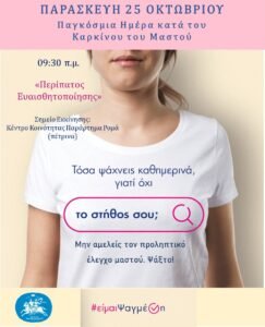 Η διαδρομή ξεκινά από το Κέντρο Κοινότητας Παράρτημα Ρομά (πέτρινα) στις 9:30 π.μ. και μέσω του κεντρικού δρόμου θα καταλήξει στην Πλατεία Ηρώων. Καλούνται όλοι οι πολίτες να συμμετάσχουν, προκειμένου να στηρίξουν την προσπάθεια ενημέρωσης για την έγκαιρη διάγνωση και την πρόληψη του καρκίνου του μαστού.